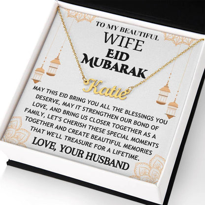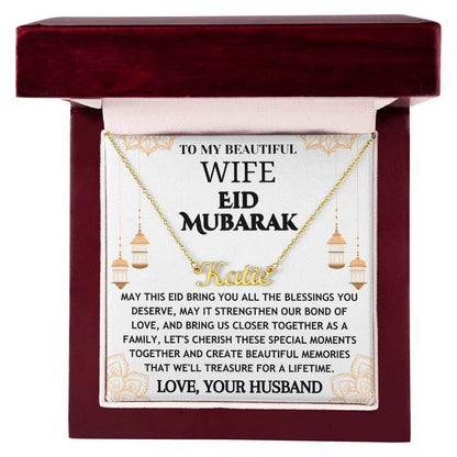 "To my beautiful Wife. May this Eid bring you all the blessings you deserve, May it strengthen our bond of love, and bring us closer together as a family, Let's cherish these special moments together and create beautiful memories that we'll treasure for a lifetime"